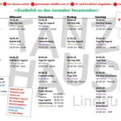 Hier findet ihr die jeweiligen tagesaktuellen Zoom IDs mit den Passwörtern! Nun müsst ihr nur noch in zoom die ID und das Passwort zum jeweilgen Zeitpunkt eingeben!! Viel Spaß!!! Hier ist noch einmal der aktuelle online Stundenplan für alle zum Mitmachen!! Schaut rein, macht mit!! IDs für Freitag, 22.05.2020 Freitag Locking mit Daniel Read more about Open Tanzhaus @home: Hier gehts zu den aktuellen Zoom IDs[…]